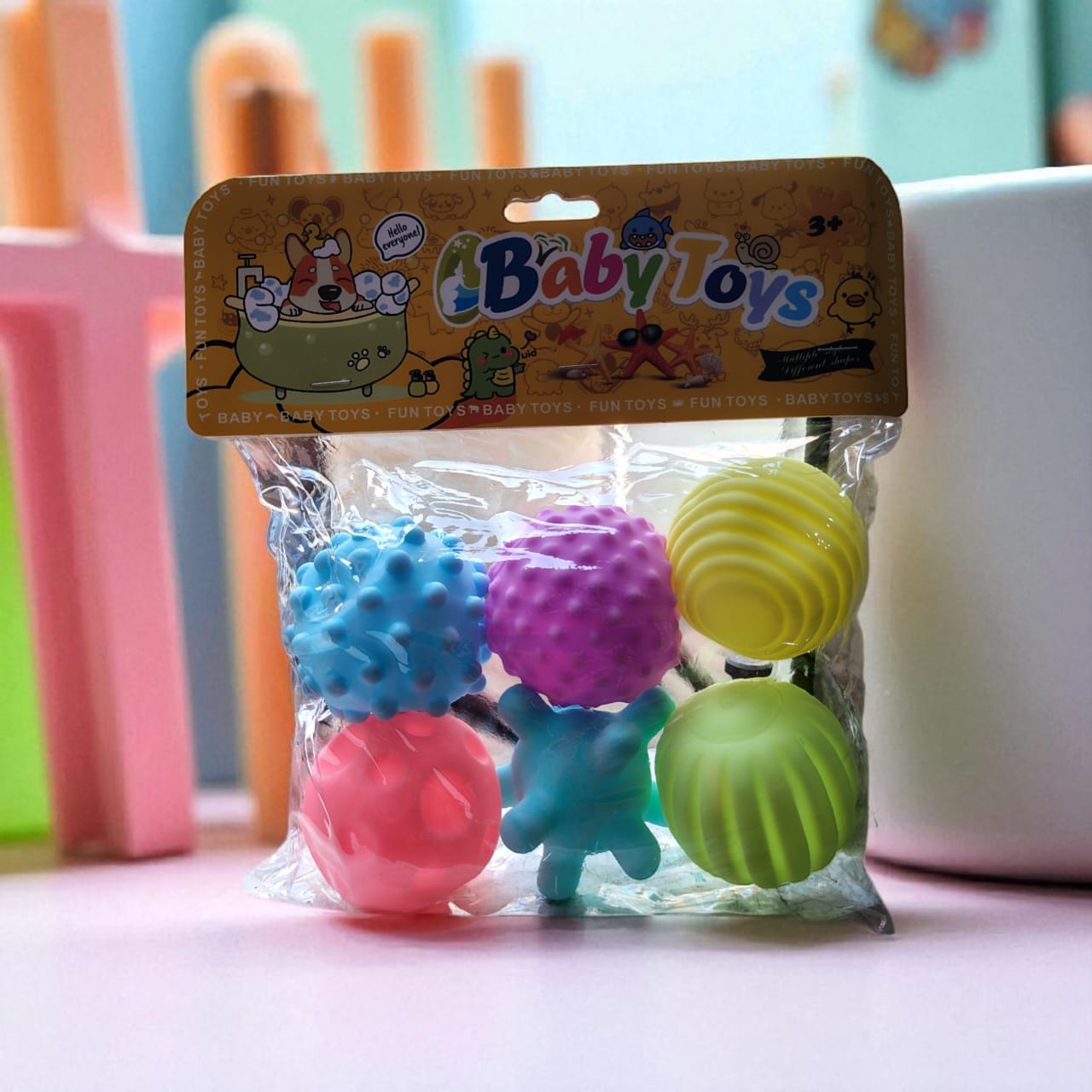 Estimula los sentidos de tu bebé con nuestro Set de Pelotas Sensoriales, diseñado para desarrollar la motricidad, el tacto y la coordinación a través del juego. Cada pelota ofrece una experiencia única de texturas y colores que captan la atención y curiosidad de los más pequeños.
