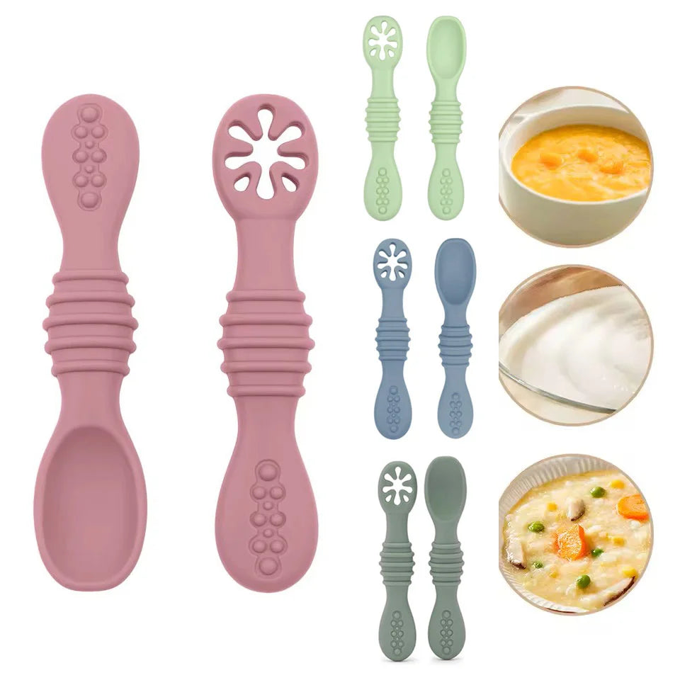 Ideal para los primeros intentos de alimentación independiente, nuestros Pre-Cubiertos están diseñados específicamente para manitas pequeñas que están descubriendo cómo sostener y usar utensilios por primera vez.
