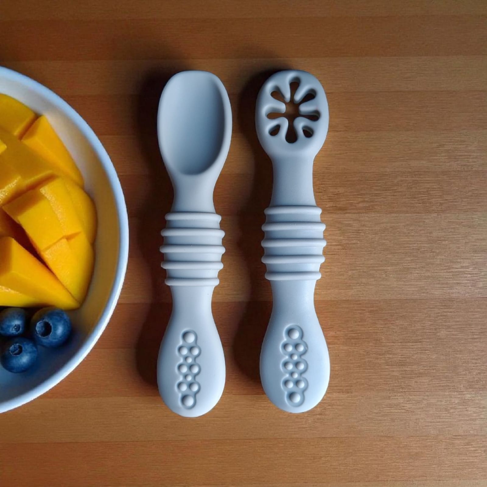 Ideal para los primeros intentos de alimentación independiente, nuestros Pre-Cubiertos están diseñados específicamente para manitas pequeñas que están descubriendo cómo sostener y usar utensilios por primera vez.
