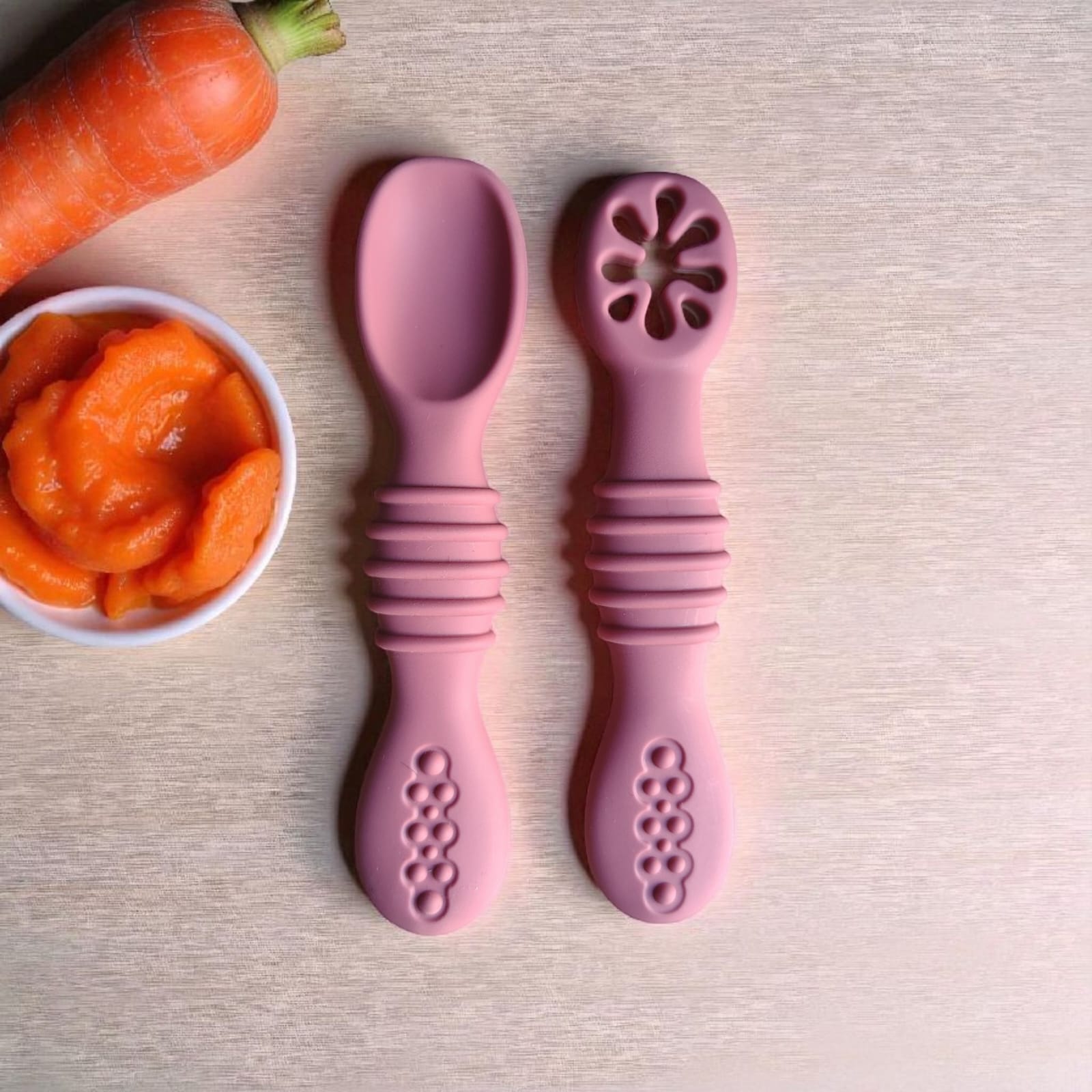 Ideal para los primeros intentos de alimentación independiente, nuestros Pre-Cubiertos están diseñados específicamente para manitas pequeñas que están descubriendo cómo sostener y usar utensilios por primera vez.